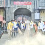 कोल्हापूर महापालिकेसमोर ‘धूळफेक आंदोलन’, धुळीच्या प्रश्नावर ‘आप’कडून निषेध