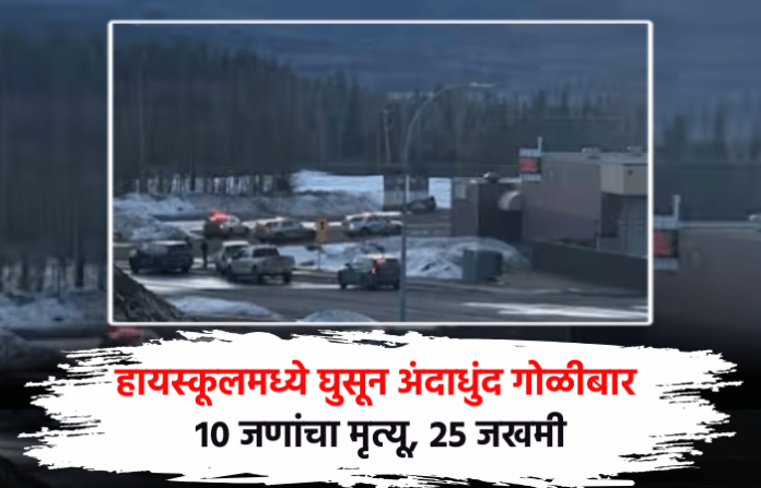 कॅनडातील ब्रिटिश कोलंबिया प्रांतातील टंबलर रिज येथील एका शाळेत अंदाधुंद गोळीबार झाला आहे. या गोळीबारात 9 जणांचा मृत्यू झाला असून 25 हून अधिक लोक जखमी झाले आहेत. या हल्ल्यातील मुख्य संशयित हल्लेखोर महिलेने स्वतःवर गोळी झाडून घेत आत्महत्या केल्याची माहिती पोलिसांनी दिली.