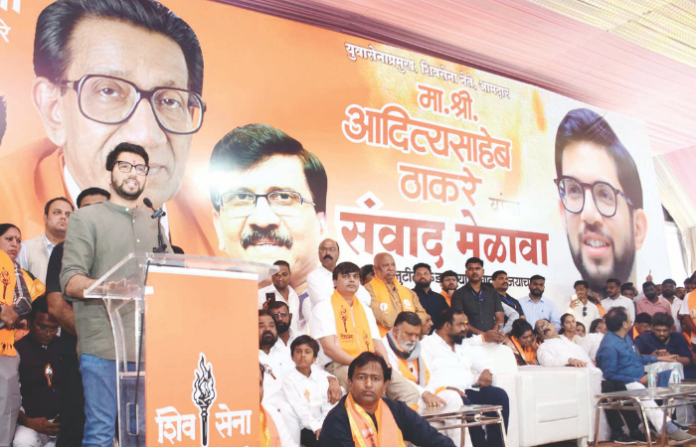 या सरकारचा धर्म बिल्डर धर्म आहे, सब भूमी बिल्डर की, असंच त्यांना वाटतंय, असा घणाघात आदित्य ठाकरे यांनी प्रसारमाध्यमांशी बोलताना केला. माईस हब कुठेही होईल, तरी ठक्कर म्हणून कुणी बिल्डर आहे, त्याने मुख्यमंत्र्यांसोबतचा व्हिडीओ व्हायरल केला होता, तो मुख्यमंत्र्यांना सुचवतो. तपोवनला यलो झोन करून बिल्डरांना तुम्ही सगळं देणार असाल तर नाशिककरांच्या हाती काय उरणार, असा संताप आदित्य ठाकरे यांनी व्यक्त केला. झाडांवर कुऱ्हाड चालवू पाहणाऱ्या या सत्ताधाऱ्यांना मतदान होऊच नये. कारण, ते आता थातूरमातूर सांगतील, नंतर बुलडोझर घेऊन येतील, अशा शब्दांत नाशिककरांना जागरूक केले.