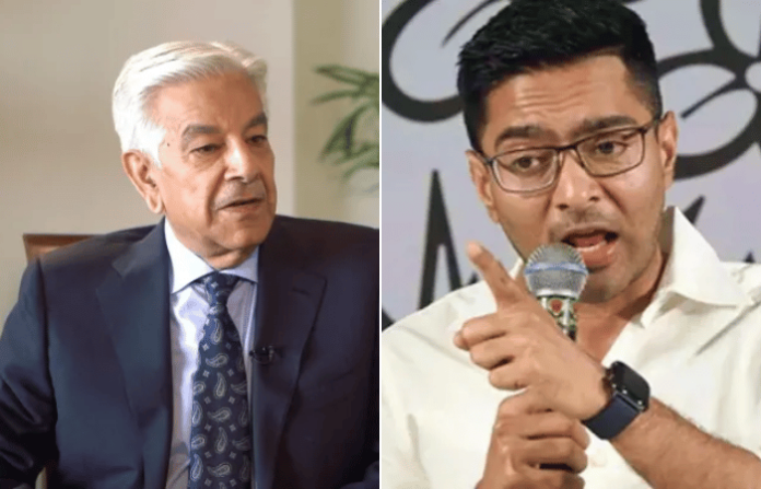 ख्वाजा आसिफ यांनी सियालकोट येथे बोलताना हिंदुस्थानला पोकळ धमकी दिली होती. हिंदुस्थान आणि पाकिस्तानमध्ये भविष्यात युद्ध झाल्यास ते सीमेपुरते मर्यादित राहणार नाही. आम्ही थेट कोलकात्यावर हल्ला करू, अशी धमकी आसिफ यांनी दिली होती. हिंदुस्थानने कोणतीही कारवाई केल्यास आम्ही घरात घुसून मारू असेही ते म्हणाले हगोते. याचा तीव्र शब्दांमध्ये निषेध करत अभिषेक बॅनर्जी यांनी चोख प्रत्युत्तर दिले. ज्या दिवशी ममता बॅनर्जी आणि इंडिया आघाडीचे सरकार सत्तेवर येईल, त्या दिवशी आम्ही त्यांच्या घरात घुसून त्यांना मारू, असे ते म्हणाले.