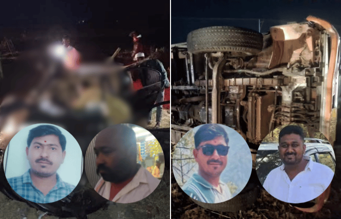 शुभम शेषेराव पाटील (वय -28), किसन रामलिंग साळुंके (वय – 48), आबासाहेब आप्पासाहेब साळुंके (वय -36, तिघेही राहणार बोरगाव नकुलेश्वर, ता. औसा) आणि धनराज काशिनाथ जाधव (वय 46, रा. सांगली) अशी मृतांची नावे आहेत. तर जयहिंद विलास जाधव (वय 26 रा. होळकर नगर, औसा) आणि विनायक श्रीकांत होळदार (रा. सांगली) हे गंभीर जखमी झाले आहेत. जखमींना उपचारांसाठी औसा येथील ग्रामीण रुग्णालयात दाखल करण्यात आले आहे.
