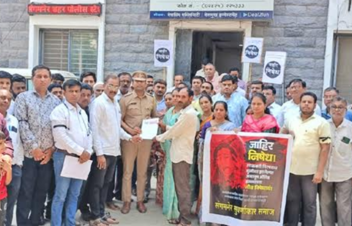 आज सुवर्णकार समाज, सराफ संघटना आणि विविध व्यापारी संघटनांनी रस्त्यावर उतरून आंदोलन केले. संगमनेर शहरात मूक मोर्चा काढण्यात आला. यावेळी ‘आरोपीला अटक करा, कठोर शिक्षा द्या’, या घोषणांनी शहर दणाणून गेले. दरम्यान, स्वर्णकार समाजाचे अध्यक्ष मोहन कुलथे, पोलीस मित्र संगमनेर तालुका उपाध्यक्ष स्वाती मुंडलिक, चैताली कुलथे, दीपाली गणोरेकर, वैशाली बुऱहाडे यांनी आरोपीला तातडीने अटक करण्याची मागणी केली. विविध संघटनांनी पोलीस निरीक्षक समीर बारवकर, उपाधीक्षक डॉ. कुणाल सोनवणे आणि नायब तहसीलदार मार्तंड माळवे यांना निवेदन देत संताप व्यक्त केला.
