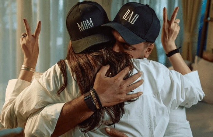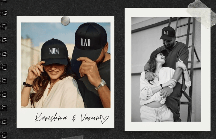 या फोटोमध्ये करिश्मा आणि वरुणने खास कॅप घातली आहे, ज्यावर ‘MOM’ आणि ‘DAD’ असे लिहिले आहे.