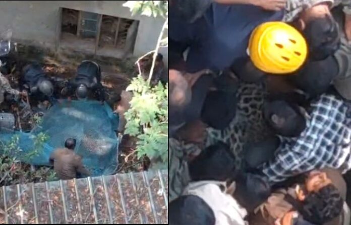 तब्बल तीन तासाच्या थरारानंतर कोल्हापुरात बिबट्या जेरबंद, उच्चभ्रू वसाहतीत एका हाॅटेलमधुन शिरला