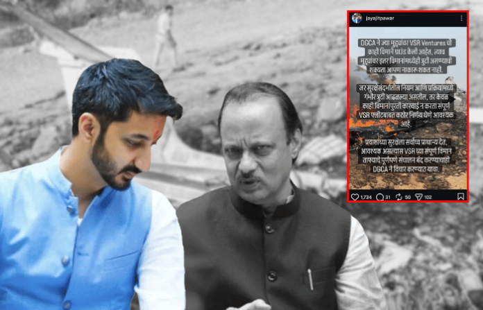 जय पवार यांनी ‘डीजीसीए’ला थेट आवाहन केले आहे की, प्रवाशांच्या सुरक्षेला सर्वोच्च प्राधान्य देऊन व्हीएसआर व्हेंचर्सच्या संपूर्ण विमान ताफ्यावर कठोर निर्णय घेण्यात यावा. आवश्यक वाटल्यास या कंपनीचे संपूर्ण विमान संचालन तात्काळ बंद करण्याचा विचार प्रशासनाने करावा, अशी मागणीही त्यांनी केली आहे.