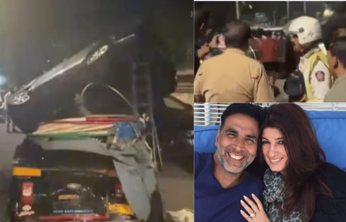 बॉलीवूडचा खिलाडी अक्षय कुमार याच्या ताफ्यातील एका गाडीला सोमवारी रात्री मुंबईतील जुहू परिसरात भीषण अपघात झाला. एका भरधाव मर्सिडीज कारने रिक्षाला धडक दिली, ज्यामुळे ती रिक्षा अक्षय कुमारच्या ताफ्यातील ‘इनोव्हा’ गाडीवर जाऊन आदळली. सुदैवाने या अपघातात अक्षय कुमार आणि त्यांची पत्नी ट्विंकल खन्ना दुसऱ्या कारमध्ये पुढे असल्याने ते या अपघातातून सुरक्षित बचावले आहेत.