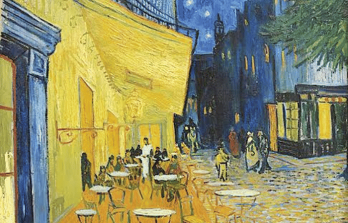1888 हे साल व्हॅन गॉगच्या आयुष्यातला सर्वात उमेदीचा आणि आनंदाचा काळ. या काळात व्हॅन गॉगनं त्याचं प्रसिद्ध ‘यलो हाऊस’ हे घर सजवण्यासाठी झपाटल्यासारखी चित्रं काढली. याच चित्रमालिकेत एक चित्र म्हणजे ‘कॅफे टेरेस अॅट नाईट’.