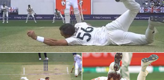 इंग्लंड आणि ऑस्ट्रेलिया संघात पर्थच्या ऑप्टस स्टेडियमवर अॅशेस मालिकेतील पहिला सामना सुरू आहे. पर्थच्या उसळी घेणाऱ्या खेळपट्टीवर वेगवान गोलंदाज आग ओकत आहेत. पहिल्या डावात ऑस्ट्रेलियाकडून मिचेल स्टार्क, तर इंग्लंडकडून बेन स्टोक्सने दमदार गोलंदाजी केली. यामुळे इंग्लंडचा पहिला डाव 172, तर ऑस्ट्रेलियाचा पहिला डाव 132 धावांमध्ये आटोपला. इंग्लंडला 40 धावांची महत्त्वपूर्ण आघाडी मिळाली. अर्थात हा आनंद … Continue reading Ashes 2025 – हॅट्स ऑफ स्टार्क… स्वत:च्याच गोलंदाजीवर घेतला अविश्वसनीय कॅच, व्हिडीओ पाहून तुम्हीही टाळ्या वाजवाल