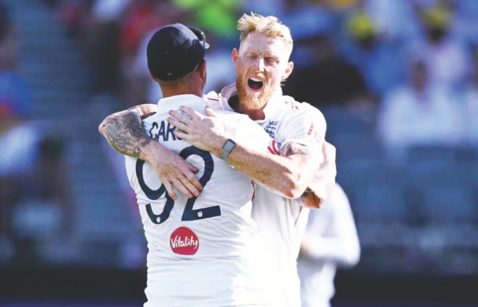 मात्र सामन्याचे चित्र इंग्लंडच्या गोलंदाजांनी पुन्हा बदलून दाखवले. जोफ्रा आर्चरने ऑस्ट्रेलियाच्या डावातील पहिल्याच षटकात विकेट घेतली आणि इंग्लंडच्या वेगवान तुफानाने यजमान संघाला जबर हादरे दिले. मधल्या सत्रात स्वतः कर्णधार स्टोक्सने हातात चेंडू घेतला आणि त्याने आपल्या 6 षटकांच्या गोलंदाजीत ऑस्ट्रेलियाच्या 5 विकेट काढून दिवसाचा शेवट भन्नाट केला. त्याने 4 बाद 73 वरून दिवसअखेर 9 बाद 123 अशी नाटय़मय स्थिती केली. उद्या इंग्लंडचा संघ किमान 40 धावांची आघाडी घेईल, असा अंदाज आहे. आज दिवसभरात 19 विकेट्स पडल्या तर हॅरी ब्रुकने 52 धावांची खेळी केली. तसेच हॅरी ब्रुक आणि ओली पोपने चौथ्या विकेटसाठी 55 धावांची सर्वोच्च भागी केली. त्याचबरोबर तब्बल एका शतकानंतर ‘ऍशेस’ मालिकेत एका दिवसांत 19 विकेट पडण्याची दुर्मिळ घटनाही घडली.