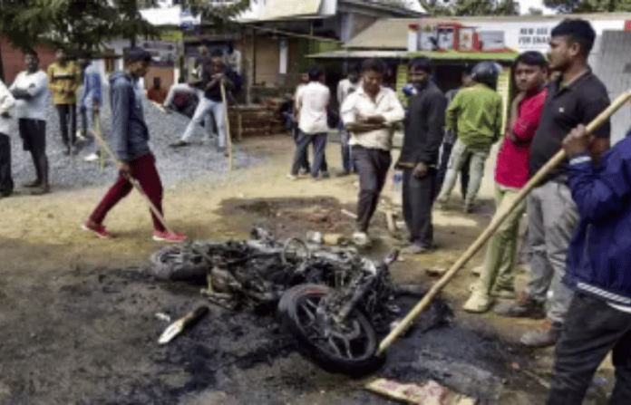 आसाममधील कोक्राझार जिल्हय़ात पुन्हा हिंसाचार भडकला आहे. सोमवारी झालेल्या मॉब लिंचिंगमध्ये एकाचा मृत्यू झाल्यानंतर आज मोठय़ा प्रमाणात हिंसाचार उफाळून आला. बोडो समुदाय आणि आदिवासींमध्ये संघर्ष झाला. दोन्ही समुदायांनी घरे आणि करिगाव पोलीस चौकीला आग लावली.