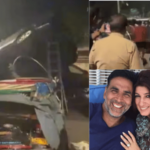 अक्षय कुमारच्या ताफ्यातील गाडीचा भीषण अपघात; अक्षय आणि ट्विंकल थोडक्यात बचावले.