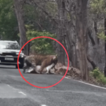 Chandrapur news – चंद्रपूर-मूल महामार्गावर वाघाने भररस्त्यात केली गायीची शिकार, वाहतूक ठप्प