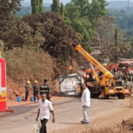 Ratnagiri News – मुंबई-गोवा महामार्गावर टॅंकर उलटला, केमिकल रस्त्यावर पसरल्याने हातखंबामध्ये वाहतूक ठप्प