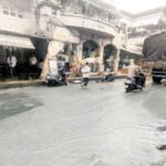 अबब.. वीस फूट रुंद खड्ड्यात चौकचा रस्ता ‘बुडाला’, भरबाजारपेठेतील रस्त्याची दैना; गुडघाभर पाण्यातून पायपीट