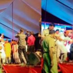 गाण्याच्या कार्यक्रमात नाचताना स्टेज तुटला, मिंधे गटाच्या आमदारासह कार्यकर्ते खाली पडले
