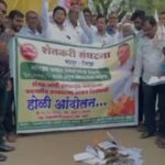 चंद्रपुरात शेतकरी संघटनेच्या वतीने शासन निर्णयाच्या प्रतीची होळी; जिल्हाधिकारी कार्यालयासमोर आंदोलन