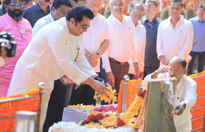 महाराष्ट्र नवनिर्माण सेनेचे अध्यक्ष राज ठाकरे यांनी आज शिवतीर्थ येथील स्मृतीस्थळावर वंदनीय हिंदुहृदयसम्राट शिवसेनाप्रमुख बाळासाहेब ठाकरे यांना स्मृतिदिनानिमित्त अभिवादन केले.