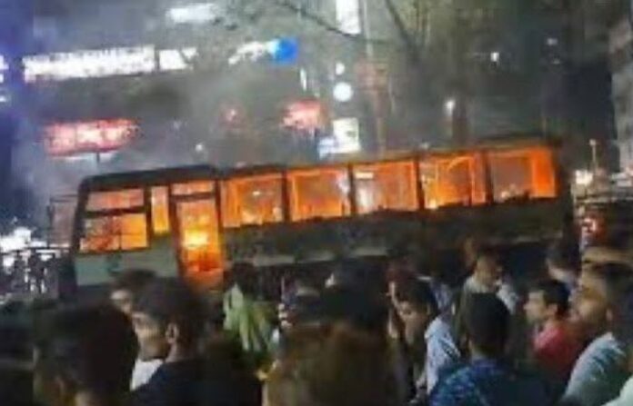 आवामी लीगच्या कार्यकर्त्यांनी बांग्लादेशातील युनुस सरकारविरुद्ध बंडाचे रणशिंग फुंकले आहे. ढाका लॉकडाऊनच्या पार्श्वभूमीवर सुरू झालेल्या या आंदोलनात आतापर्यंत 17 बसेस जाळल्या गेल्याची माहिती मिळाली आहे. ढाकामधील 5 ठिकाणी स्फोट झाल्याच्याही बातम्या आहेत. आवामी लीगच्या हिंसक आंदोलनामुळे ढाका आणि मेमनसिंहसारख्या मोठ्या शहरांमध्ये सैन्याची तैनाती करण्यात आली आहे.