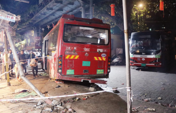 भांडुप रेल्वे स्थानकाच्या पश्चिमेकडील बाजूस रेल्वे, बस व रिक्षा प्रवाशांची सतत ये-जा सुरू असते. त्याशिवाय बाजार असल्यामुळे इतर रहिवाशांचीही मोठी गर्दी असते. अशा गर्दीच्या वेळी रात्री दहा वाजण्याच्या सुमारास हा अपघात झाला. नेहमीप्रमाणे तिथे आलेली बस मागे घेत असताना चालकाचे नियंत्रण सुटले. त्यामुळे बस अत्यंत वेगात मागे आली. त्याखाली अनेक लोक चिरडले गेले. या घटनेमुळे स्टेशन परिसरात आरडाओरडा आणि घबराट उडाली. अपघातात मृत्यू झालेल्यांमध्ये तीन महिला व एका पुरुषाचा समावेश आहे, तर जखमींमध्ये एक महिला व 8 पुरुष आहेत. या सर्वांना रुग्णालयात दाखल करण्यात आले असून त्यांच्यावर उपचार सुरू आहेत.