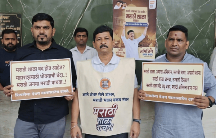 नवी मुंबई शहरातील पालिकेच्या मराठी शाळा बंद करण्याचा घाट सत्ताधारी भाजपने घातल्यामुळे शिवसेना आणि मनसेचे नगरसेवक आक्रमक झाले. या प्रस्तावाच्या विरोधात या नगरसेवकांनी महापालिका मुख्यालयात ‘नवी मुंबईतील पालिका शाळा बंद कराल तर खबरदार’ असा इशारा देत जोरदार निदर्शने केली. या प्रस्ताववर सभागृहात चर्चा सुरू असताना विरोधकांनीही कडाडून विरोध केला. मात्र सत्ताधाऱ्यांनी बहुमताच्या जोरावर हा प्रस्ताव मंजूर करून घेतला.