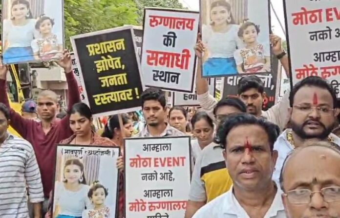 सर्पदंश झाल्यानंतर श्रुती ठाकूर (२३) आणि प्राणगी भोईर (४) यांना शास्त्रीनगर रुग्णालयात दाखल केले होते. मात्र डॉक्टरांच्या हलगर्जीपणामुळे वेळेत उपचार न मिळाल्यामुळे दोघींचाही मृत्यू झाला. यामुळे पालिकेच्या आरोग्य विभागाचा निषेध करण्यासाठी आणि आरोग्य सेवा बळकट करण्याच्या मागणीसाठी आज मोर्चा काढण्यात आला. भीक द्या, भीक द्या… केडीएमसी आयुक्तांना भीक द्या, खासदार आणि आमदार यांच्याकडून नको दांडिया, नको गरबा, आम्हाला हवी आरोग्य सेवा आदी घोषणांनी शास्त्रीनगर रुग्णालय परिसर दणाणून सोडला. मोर्चात शिवसेना (उद्धव बाळासाहेब ठाकरे) पक्षाचे कल्याण जिल्हाप्रमुख दीपेश म्हात्रे, जिल्हा संघटक तात्या माने, शहरप्रमुख प्रकाश तेलगोटे, ओमनाथ नाटेकर, विधानसभा संघटक रोहिदास मुंडे, उपजिल्हाप्रमुख रमेश पाटील, राहुल भगत, महिला शहर संघटक अक्षरा पटेल, सुप्रिया चव्हाण, आदित्य पाटील, सुजल म्हात्रे, धनंजय म्हात्रे, उपशहरप्रमुख शाम चौगले, संजय पाटील, प्रमोद कांबळे, सुरेश परदेशी, विजय भोईर, भगवान पाटील, परेश पाटील, मुकेश भोईर, शाखाप्रमुख सचिन जोशी, परेश म्हात्रे, रिचा कामतेकर, मनसेचे प्रकाश भोईर, राष्ट्रवादी काँग्रेस शरदचंद्र पवार पक्षाचे भालचंद्र पाटील, काँग्रेस पक्षाचे प्रदेश सचिव संतोष केणे, सत्यवान म्हात्रे, कम्युनिस्ट पक्षाचे काळू कोमसकर आदी सहभागी झाले होते.