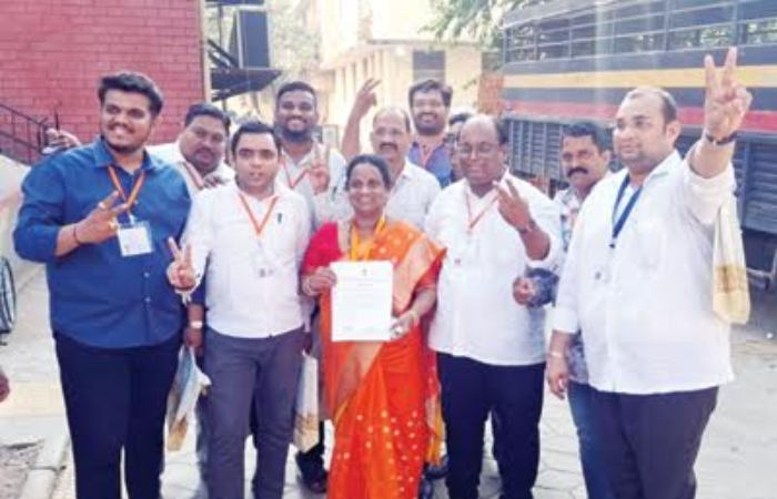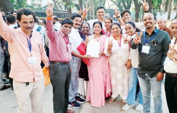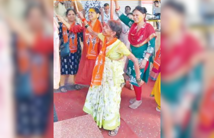 शिवसेनेच्या उमेदवार हर्षला मोरे यांनी दणदणीत विजय मिळवल्यानंतर कार्यकर्त्यांसोबत एकच जल्लोष केला.