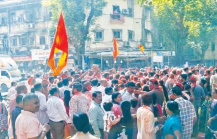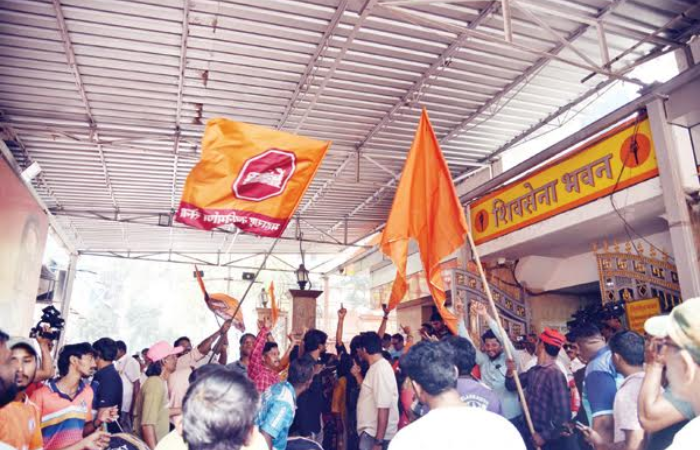 शिवशक्तीचे उमेदवार विजयी झाल्यानंतर शिवसेना–मनसेच्या कार्यकर्त्यांनी शिवसेना भवन येथे जल्लोष केला.