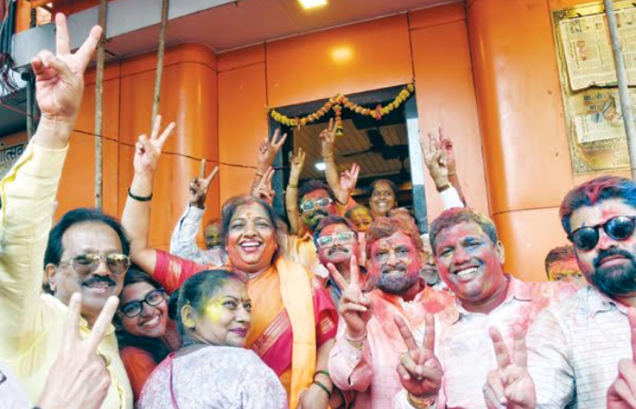मुंबई महानगरपालिकेच्या निवडणुकीत शिवसेना, महाराष्ट्र नवनिर्माण सेना आणि राष्ट्रवादीच्या शिवशक्तीने पैसा आणि शाईच्या खेळाला जोरदार टक्कर दिली. भाजपच्या गड असलेल्या अनेक वॉर्डांमध्ये शिवशक्तीच्या उमेदवारांनी कडवी टक्कर देत विजय मिळवला. महानगरपालिकेच्या निकालानंतर शिवशक्तीचे विजयी उमेदवार आणि त्यांच्या समर्थकांनी मोठा जल्लोष केला. विजयी झालेल्या काही उमेदवारांनी शिवसेना भवनापर्यंत मिरवणूक काढली. ढोल–ताशांच्या गजरात शिवसैनिकांनी विजयाचा गुलाल उधळला. विजयी उमेदवारांनी आपापल्या वॉर्डांत विजयी मिरवणुका काढल्या. शिवसैनिकांनी केलेल्या जयघोषाने मुंबईतील रस्ते दणाणून गेले. मुंबईच्या निकालाने पैसा आणि सत्तेचा पाशवी अहंकार असलेल्यांना जमिनीवर आणले आहे. अनेक मतदारसंघांत गद्दारांची शिवशक्तीने दाणादाण उडवली. गद्दारांच्या उमेदवारांवर शिवशक्तीच्या उमेदवारांनी दणदणीत विजय मिळवला. एकीकडे गद्दारांना धडा शिकवताना शिवसेनेचा बालेकिल्ला असलेल्या वॉर्डांमध्ये निष्ठावंतांनी मोठय़ा फरकाने विजयश्री मिळवली. बालेकिल्ल्यात आवाज निष्ठावतांचाच आणि त्याचवेळी गद्दारांना नाही थारा, असा संदेश शिवसैनिक आणि मनसैनिकांनी दिला आहे.