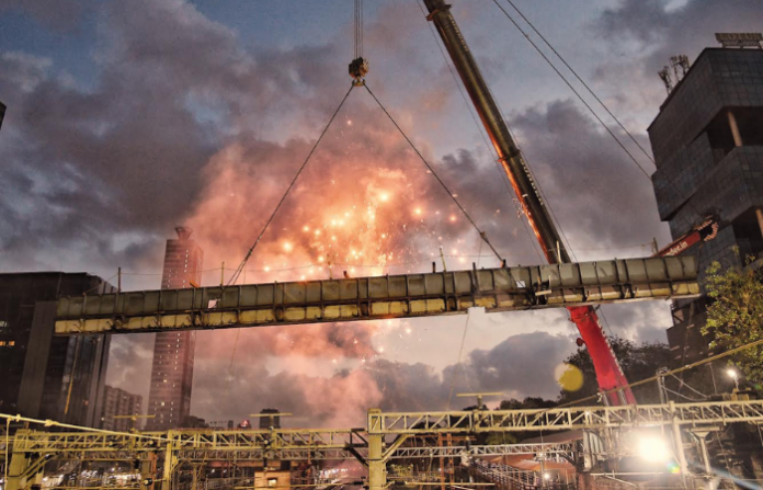 ब्रिटिशकालीन ‘एल्फिन्स्टन पूल’ शनिवारी रात्री जमीनदोस्त करण्यात आला. मध्य रेल्वे आणि ‘महारेल’च्या यंत्रणांनी संपूर्ण रात्रभर अविश्रांत काम करीत जुन्या पुलाचे महाकाय गर्डर्स हटवले. पहाटेच्या सुमारास ‘मिशन एल्फिन्स्टन’ फत्ते करण्यात आले आणि फटाक्यांची जोरदार आतषबाजी करून यशस्वी कामगिरीचा जल्लोष साजरा करण्यात आला. या पुलाच्या जागी ‘महारेल’द्वारे पुढील चार महिन्यांत नवीन डबलडेकर पूल उभारण्यात येणार आहे.