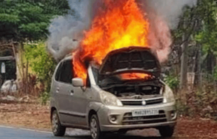 सीएनजीवर चालणाऱ्या कारचे आगीत मोठे नुकसान झाले आहे. सुदैवाने या घटनेत कोणतीही जीवितहानी झालेली नाही. मुंबईहून दारिस्ते येथे जाणारे कुटुंब या कारमधून प्रवास करत होते. कारमध्ये बिघाड झाल्याने कार रस्त्याच्या कडेला उभी करण्यात आली होती. काही वेळातच कारच्या पुढील भागातून धूर निघू लागला आणि क्षणातच आगीने भीषण रूप धारण केले. आगीच्या ज्वाळा मोठ्या प्रमाणात उसळल्याने परिसरात काही काळ भीतीचे वातावरण निर्माण झाले. बर्निंग कारचा थरार पाहण्यासाठी बघ्यांची गर्दी झाली होती.