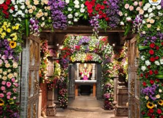 Photo – लक्ष्मीपूजनानिमित्त श्री विठ्ठल-रुक्मिणी मंदिरामध्ये रंगीबेरंगी फुलांची आकर्षक सजावट