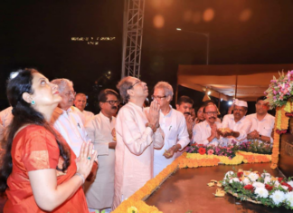 Photo – उद्धव ठाकरे यांनी कुटुंबियांसह शिवसेनाप्रमुखांच्या कुलाबा येथील स्मारकाला केले...