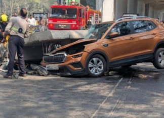 Photo – मुंबईत मुलुंडमध्ये मेट्रोच्या पुलाचा काही भाग कोसळून मोठी दुर्घटना