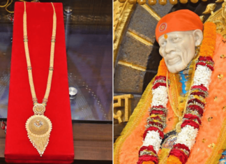 Photo – साईचरणी 59 ग्रॅम वजनाचा सुंदर नक्षीकाम असलेला सोन्याचा हार...