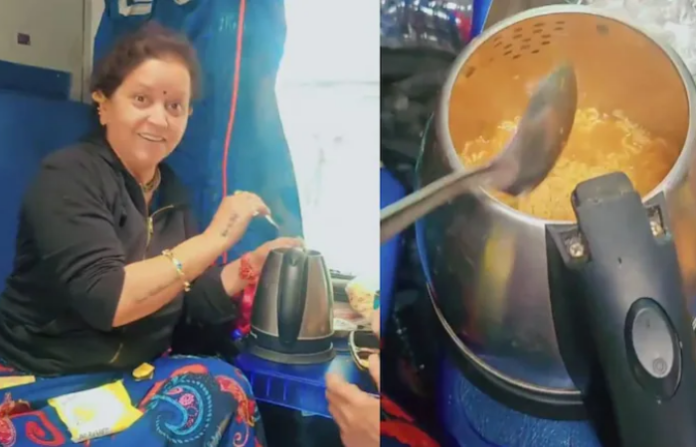 रेल्वेच्या एसी कोचमध्ये केटलमध्ये मॅगी बनवाऱ्या महिलेविरोधात मध्य रेल्वेने कारवाई सुरू केली आहे. मध्य रेल्वेने सोशल मीडियावर पोस्ट करत व्हिडिओमधील महिलेविरुद्ध आणि व्हिडिओ पोस्ट करणाऱ्या चॅनेलविरुद्ध कारवाई सुरू करण्यात आल्याचे सांगितले. अशा कृतींमुळे वीजपुरवठा खंडित होऊ शकतो आणि ट्रेनच्या एसी आणि इतर पोर्टचे नुकसान होऊ शकते, असे रेल्वेने नमूद केले.