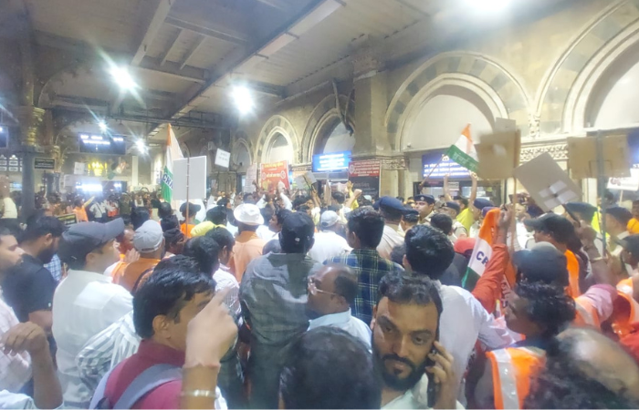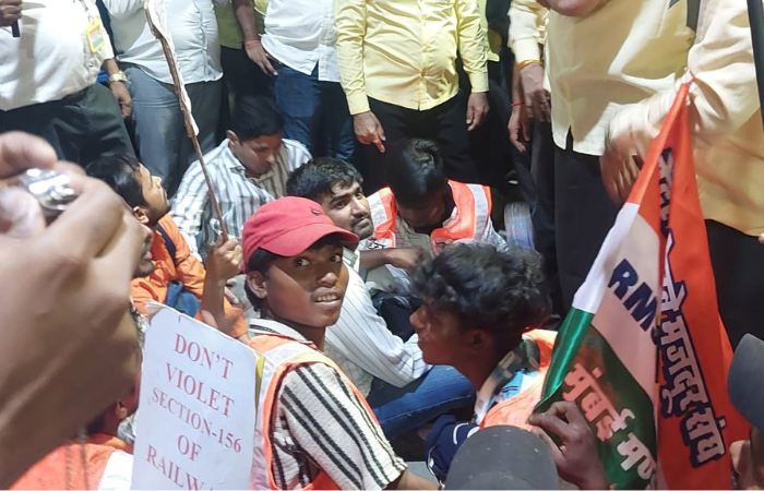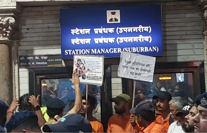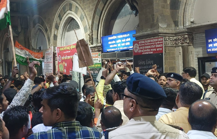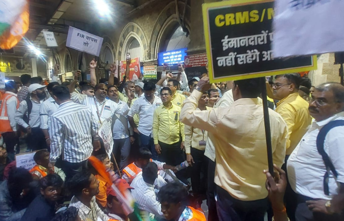 मध्य रेल्वेची वाहतूक पूर्णपणे ठप्प झाली आहे. सीएसएमटी स्थानकावर सर्व लोकल ट्रेन उभ्या असून कर्मचाऱ्यांच्या कामबंद आंदोलनामुळे वाहतूक कोलमडली आहे. त्यामुळे घरी जाणाऱ्या चाकरमान्यांचे हाल झाले आहेत. मुंब्रा रेल्वे अपघातप्रकरणी रेल्वेच्या कनिष्ठ कर्मचाऱ्यांविरुद्ध गुन्हे दाखल केल्याच्या मुद्द्यावर रेल कामगार सेनेने आक्रमक भूमिका घेतली आहे. रेल्वेच्या कनिष्ठ कर्मचाऱ्यांना बळीचा बकरा बनवू नका, कर्मचाऱ्यांवरील अन्यायकारक कारवाई खपवून घेणार नाही. कर्मचाऱ्यांविरोधातील संबंधित गुन्हे तातडीने मागे घ्या अशी मागणी रेल कागार सेनेने घेतली आहे.
