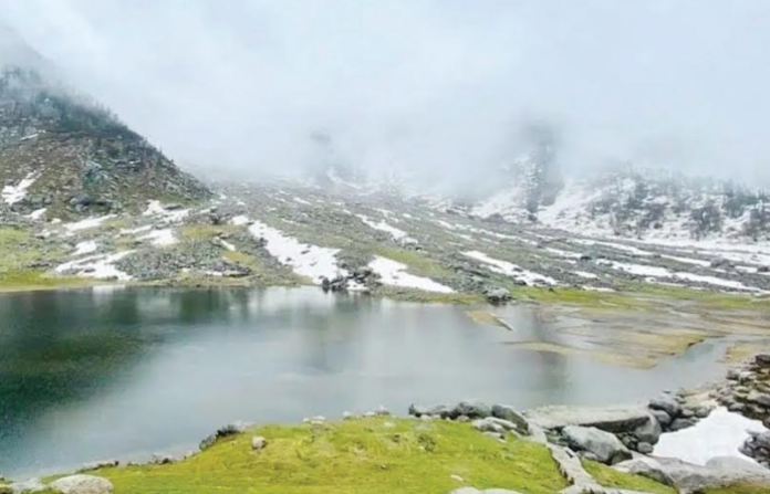 नदीच्या काठावरील वाट तलावापर्यंत पोहोचवते. तेथील पाणी स्फटिकासारखे स्वच्छ आहे आणि सर्वत्र हिरवळ आहे. येथून धौलाधर पर्वतरांगांची विलोभनीय दृश्ये दिसतात. तलावाजवळ एक शिवमंदिर आहे. तेथे दर्शन घेऊन, तलावाची शांतता अनुभवून लियोटी कॅम्प साईटकडे उतरण्यास सुरुवात होते. हा मार्ग अल्पाइन कुरणांमधून आणि घनदाट जंगलांमधून जातो. या मार्गात निसर्गदृशंमधील बदल अनुभवताना खाली असलेल्या दरीची झलकही दिसते. आपण लियोतीला पोहोचेपर्यंत, दरी मावळत्या सूर्याच्या सोनेरी रंगात न्हाऊन निघते.