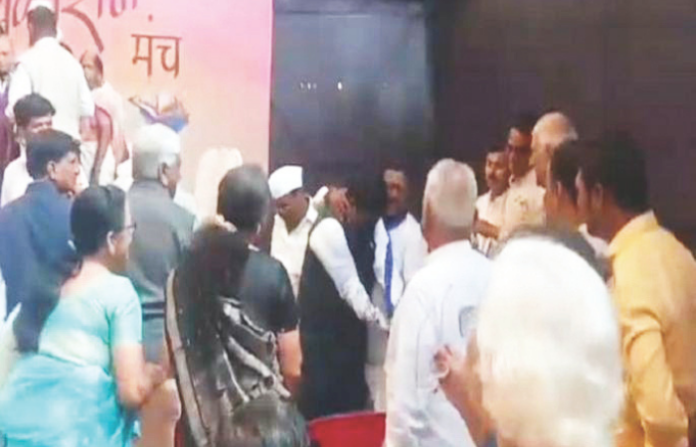 साताऱ्यात सुरू असलेल्या 99 व्या अखिल भारतीय मराठी साहित्य संमेलनाचे कार्याध्यक्ष विनोद कुलकर्णी यांच्या तोंडाला काळे फासले आणि धमकावत प्राणघातक हल्ला करण्याचा प्रयत्न शनिवारी संमेलनस्थळीच झाल्याने एकच खळबळ उडाली. याप्रकरणी पोलिसांनी एकाला ताब्यात घेतले असून साहित्य महामंडळाचे अध्यक्ष प्रा. मिलिंद जोशी व कार्याध्यक्ष कुलकर्णी यांना पोलीस संरक्षण देण्यात आले आहे.