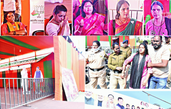 उपऱ्यांचं चांगभलं करण्यासाठी भाजप नेत्यांनी निष्ठावंतांच्या भावना पायदळी तुडवल्या. उमेदवारी नाकारल्याचे कळताच लाडक्या बहिणींनी भाजप कार्यालय गाठले. कुणी पेट्रोल ओतून घेतले, कुणी शिव्याशाप दिले, कुणाला भोवळ आली. भाजपच्या इच्छुक महिला कार्यकर्त्यांनी आक्रोश करून कार्यालय डोक्यावर घेतले. राडा होताच प्रचार कार्यालयात पोलीस बंदोबस्त लावण्यात आला. तरीही महिलांची रडारड थांबली नाही. शेवटी पोलिसांनी बळाचा वापर करून महिला कार्यकर्त्यांना बाहेर काढले. महिला कार्यकर्त्यांचा रुद्रावतार पाहून मंत्री अतुल सावे, खासदार डॉ. भागवत कराड मागच्या दाराने पळून गेले. नेते पळून जात असल्याचे पाहून कार्यकर्तेही त्यांच्या गाडीमागे पळाले. भाजप कार्यालयात दिवसभर हा पळापळीचा खेळ चालू होता.