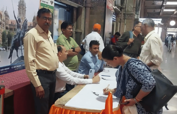 सीएसएमटीच्या उपनगरी लॉबीसमोर रेल कामगार सेनेच्या वतीने स्वाक्षरी मोहीम राबवण्यात येत आहे. आठवडाभरापूर्वी मोठ्या जल्लोषात साजरा झालेल्या शिवजन्मोत्सव (तिथीनुसार) सोहळ्यावेळी ही मोहीम सुरू करण्यात आली. त्यानंतर आठवडाभर अखंडितपणे मुंबईकरांच्या स्वाक्षऱ्या घेतल्या जात आहेत. रोज लाखो प्रवाशांची वर्दळ असलेल्या सीएसएमटी स्थानकात येणारे प्रवासी उत्स्फूर्तपणे मोहिमेत सहभागी होत आहेत. पहिल्याच दिवशी 10 हजारांहून अधिक शिवप्रेमींनी स्वाक्षरी करून भरभरून प्रतिसाद दिला होता. महाराष्ट्राचे आराध्य दैवत असलेल्या शिवरायांचा अश्वारुढ पुतळा उभारण्याकामी आता आणखी विलंब होताच कामा नये. ही आम्हा मुंबईकरांची भावना आहे. त्यामुळे रेल कामगार सेनेच्या लढ्याला यश मिळेपर्यंत साथ देणार, अशी प्रतिक्रिया शिवप्रेमी देत आहेत. रेल कामगार सेनेच्या रनिंग व ट्राफिक ब्रँचच्या वतीने पुढील आठवड्याच्या सोमवारपर्यंत ही मोहीम सुरू ठेवली जाणार आहे.