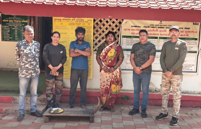 इरई धरण परिसरात वन्यजीवांची शिकार करून त्याचे मांस शिजवून खात असलेल्या वन दाम्पत्याला विभागाने रंगेहाथ पकडले. या प्रकरणी वन्यजीव संरक्षण कायद्यान्वये गुन्हा दाखल करण्यात आला आहे. ज्योती शैलेश घंटसाल (35) व त्यांचे पती शैलेश नोमनाद्री घंटसाल (38) असे अटकेतील आरोपींचे नाव असून ते आंध्रप्रदेशातील रहिवासी आहे. वन्यजीवाची शिकार करून मास शिजवित असल्याची माहिती वनविभागाला मिळताच वनविभागाच्या कर्मचाऱ्यांनी घरी धाड टाकली. यावेळी ज्योती घंटसाल व तिचा पती शैलेश घंटसाल हे फ्लॅप शेल टर्टल या संरक्षित कासवाला पकडून त्याची भाजी शिजवून खात असताना आढळून आले. पोलिसांनी दोघांनाही अटक केली. ही कारवाई वनपरिक्षेत्र अधिकारी संतोष थिपे यांनी केली.