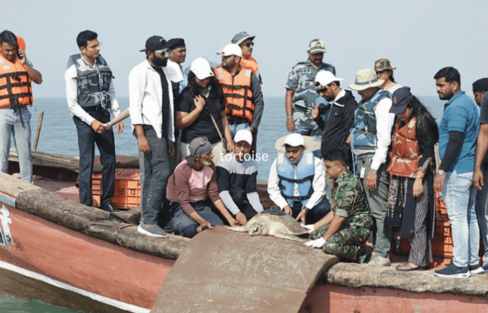 आले होते. या कासवाला दिनेश विन्हेरकर, डॉ. जान्हवी, प्राणीरक्षक प्रतीक वाहूरवाघ, रेमंड डिसोझा यांच्या टीमने उपचार केंद्रात आणले. तिथे कासवावर तज्ज्ञांमार्फत तीन ते चार महिने उपचार करण्यात आले. कासवाची तब्येत चांगली झाल्यानंतर त्याला सॅटेलाइट टॅग वाइल्ड लाइफ इन्स्टिट्यूट ऑफ इंडियाचे पदाधिकारी मोहित मुदलियार, निधी म्हात्रे यांनी कासवावर सॅटेलाइट टॅग बसवला.