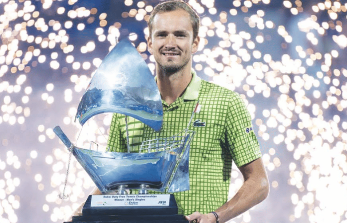 अंतिम सामना सुरू होण्याआधीच निकाल लागला आणि डॅनिल मेदवेदेवच्या खात्यात आणखी एक विजेतेपद जमा झाले. दुबई डय़ुटी फ्री टेनिस स्पर्धेच्या अंतिम फेरीतून टॅलोन ग्रीक्सपूरने डाव्या हॅमस्ट्रिंगच्या दुखापतीमुळे माघार घेतल्याने मेदवेदेवला अंतिम सामना न खेळताच किताब उंचावण्याची संधी लाभली.