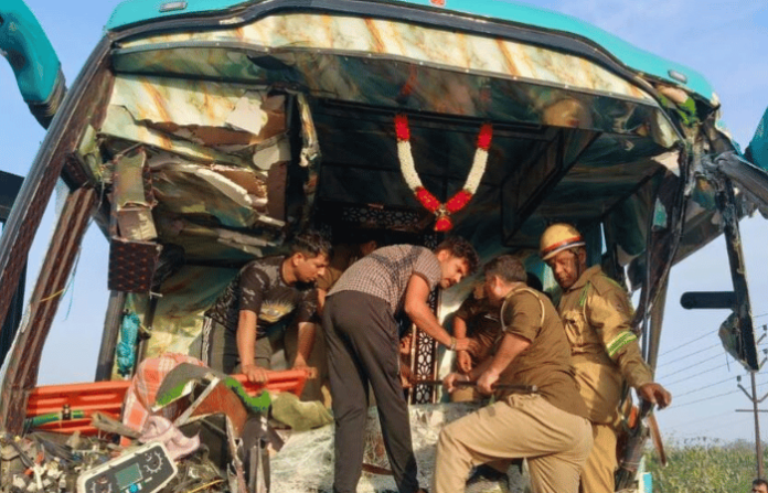 दिल्ली-कानपूर राष्ट्रीय महामार्गावर शनिवारी एक भीषण रस्ते अपघात झाला. भरधाव वेगात असलेली बस चालकाचे नियंत्रण सुटल्याने समोरील ट्रकला जोरदार धडकली. या भीषण धडकेत बस चालकाचा जागीच मृत्यू झाला असून 30 ते 40 प्रवासी गंभीर जखमी झाले आहेत. ही बस नाशिकहून नेपाळच्या दिशेने जात होती. अपघाताची माहिती मिळताच स्थानिक नागरिकांनी मदतीसाठी धाव घेतली आणि बसच्या खिडक्या व आपत्कालीन दरवाजातून प्रवाशांना सुखरूप बाहेर काढले.