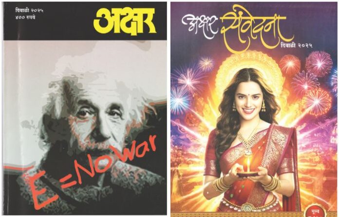 वैचारिक वाचनीय साहित्य देणारा अंक ही ‘अक्षर’ दिवाळी अंकाची ओळख. यंदा ‘युद्धकांड’ हा विशेष विभाग अंकात असून महत्त्वाचा विचार मांडणारे लेख यात आहेत. या विभागाचे संपादन ज्येष्ठ पत्रकार निळू दामले यांनी केले आहे. सुबोध जावडेकर यांचा ‘युद्ध आपल्या रक्तातच आहे?’, लोकेश शेवडे यांचा ‘न घडलेल्या युद्धाची हकिकत’, पंकज फणसे यांचा ‘उद्याचं युद्ध सायबर युद्ध’ हे लेख आणि संपूर्ण लेखमाला वाचनीय ठरली आहे. दर्जेदार कथा आणि कवितांनी अंक नटला आहे. बानू मुश्ताक यांची अनुवादित कथा ‘घरच्या अंगणात रक्त‘ हे या विभागाचे वैशिष्टय़ आहे, तर आजच्या पिढीची लेखिका हिना कौसर खान यांची स्पर्श ही कथा नक्की वाचावी अशी. सिने अभ्यासक रेखा देशपांडे यांचा ‘बेनेगलांच्या नायिका’, नीरज हातेकर यांचा ‘महाराष्ट्राची आर्थिक घसरगुंडी’ हे लेख अभ्यासपूर्ण ठरले आहेत. एकूण संपूर्ण अंक वाचनीय आणि तितकाच दर्जेदार आहे. सकस लेखन आणि वाचन घडवणारा असा हा अंक आहे.