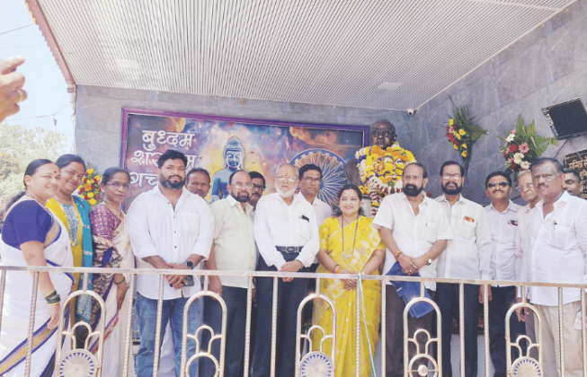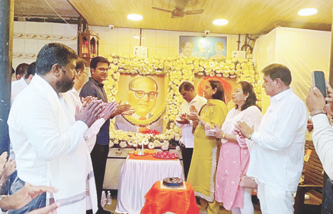 शिवसेना घाटकोपर पूर्व विधानसभेच्या वतीने माता रमाबाई आंबेडकर नगर येथील भारतरत्न डॉ. बाबासाहेब आंबेडकर यांच्या पुतळय़ाला अभिवादन करताना विभागप्रमुख सुरेश पाटील, विभाग संघटक प्रज्ञा सकपाळ, अजित गुजर, अजित भायजे, प्रकाश वाणी.