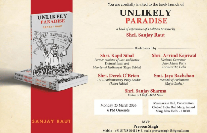 शिवसेना (उद्धव बाळासाहेब ठाकरे) नेते, खासदार आणि दैनिक सामनाचे कार्यकारी संपादक संजय राऊत यांच्या ‘नरकातला स्वर्ग’ या पुस्तकाच्या इंग्रजी (UNLIKELY PARADISE) आवृत्तीच्या प्रकाशनाची तारीख समोर आली आहे. येत्या २३ मार्च रोजी या पुस्तकाचा प्रकाशन सोहळा मावळणकर हाॅल, काॅन्सिटट्युशन क्लब ऑफ इंडिया, रफि मार्ग, संसद मार्ग नवी दिल्ली येथे आयोजित करण्यात आला आहे. संध्याकाळी 6 वाजता या पुस्तकाचे प्रकाशन करण्यात येणार आहे.