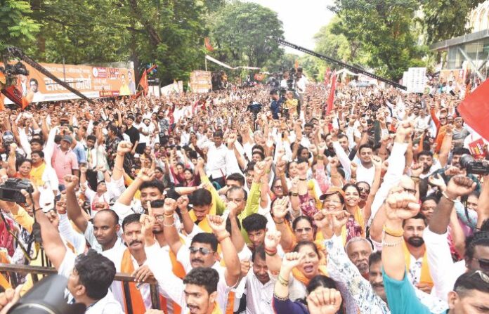 निवडणूक आयोगाविरुद्ध मुंबईत शनिवारी विराट महामोर्चा काढण्यात आला. असत्याविरोधात निघालेल्या या सत्याच्या मोर्चावर मुंबई पोलिसांनी आज गुन्हा दाखल केला आहे. परवानगी नसताना मोर्चा काढण्यात आला. प्रतिबंधात्मक आदेशांचे उल्लंघन करण्यात आले, असे कारण देत आझाद मैदान पोलीस ठाण्यात हा गुन्हा दाखल करण्यात आला आहे.
