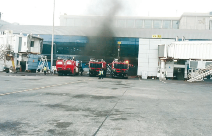 छत्रपती शिवाजी महाराज आंतरराष्ट्रीय विमानतळावरील टर्मिनल 1-बी मध्ये आज संध्याकाळी अचानक आग लागली. टर्मिनलच्या तळमजल्यावर असलेल्या स्विच बोर्डमध्ये शॉर्टसर्किट झाल्याने ही आग लागल्याचे उघडकीस आले आहे. या आगीमुळे टर्मिनलमध्ये धुराचे लोट पसरले होते. अचानक लागलेल्या आगीमुळे प्रवाशांमध्ये भीतीचे वातावरण पसरले होते. टर्मिनलवरील कर्मचारी व सुरक्षा रक्षकांनी या प्रवाशांना सुखरूप बाहेर काढल्याने ते बचावले. सुदैवाने या घटनेत कोणालाही दुखापत झालेली नाही.
