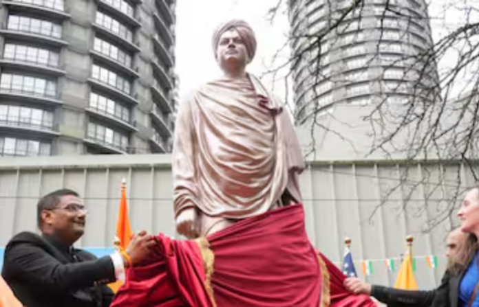 स्वामी विवेकानंद यांच्या पहिल्या भव्य पूर्णाकृती पुतळ्याचे अमेरिकेतील सीएटल शहरात अनावरण करण्यात आले आहे. पीटीआयने (PTI) दिलेल्या वृत्तानुसार, अमेरिकेतील एखाद्या शहरात प्रशासनाकडून त्यांचा अशा प्रकारे पूर्णाकृती पुतळा बसवण्याची ही पहिलीच वेळ आहे.